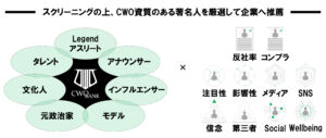 1.貴社に最適な著名人CWOを御紹介、ペアリング致します!