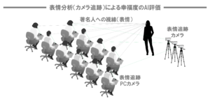 ※世界TOPレベルの希少なフルスクラッチのAIベンダーが、社員の顔表情から幸福度を分析します。